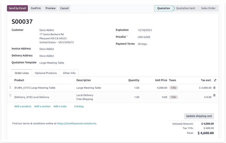 Create clean, professional, and interactive quotations instantly with Odoo's powerful quotation builder.